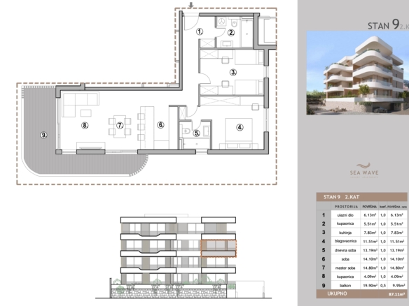 Predstavljamo vam jedinstvenu priliku za kupnju luksuznih stanova smještenih u ekskluzivnoj zgradi “SEA WAVE”, dizajniranoj u mediteranskom stilu koji podsjeća na kretnje valova mora.